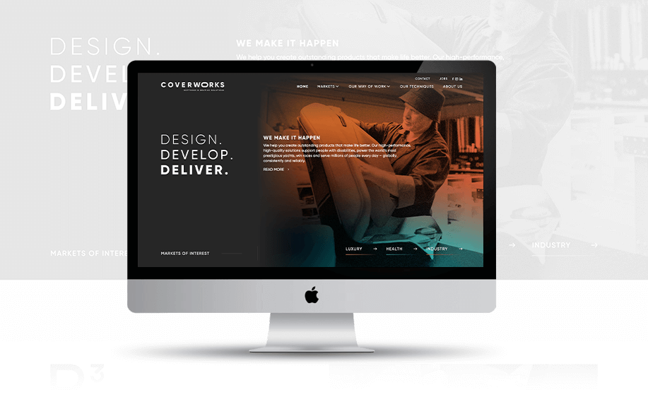 De nieuwe identiteit verbindt de gezamenlijke expertise onder één krachtige belofte: Design. Develop. Deliver. Een herkenbaar, internationaal merk dat staat voor innovatie, vakmanschap en samenwerking — met een visuele stijl die technologie en ambacht samenbrengt.