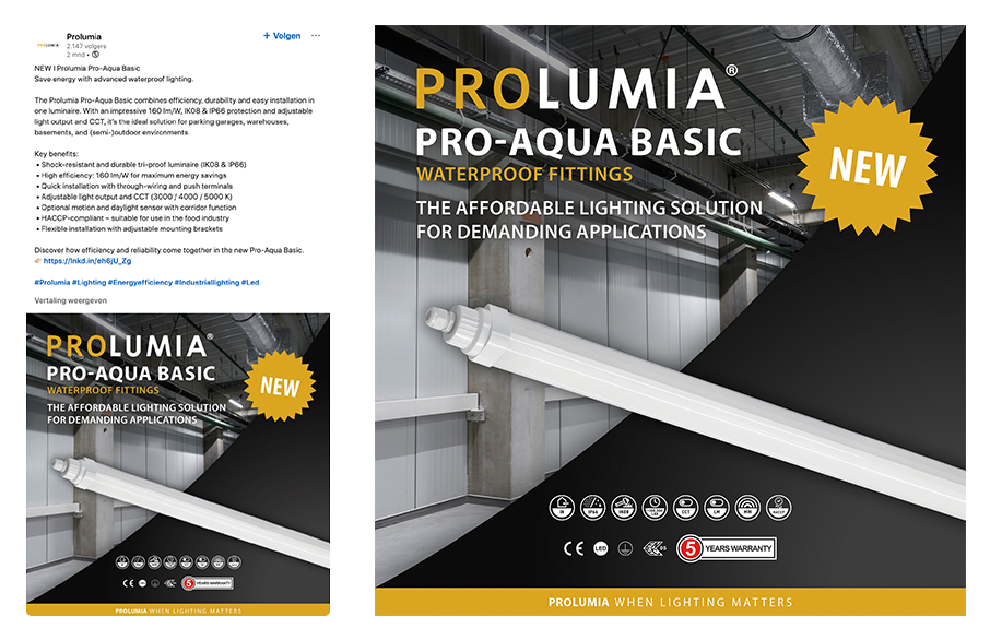Als vaste marketingpartner ondersteunt Legit de merkontwikkeling en positionering van Prolumia. We begeleiden het merk strategisch en creatief: van productintroducties en verpakkingsontwerp tot manuals, labels en (meertalige) productfolders.